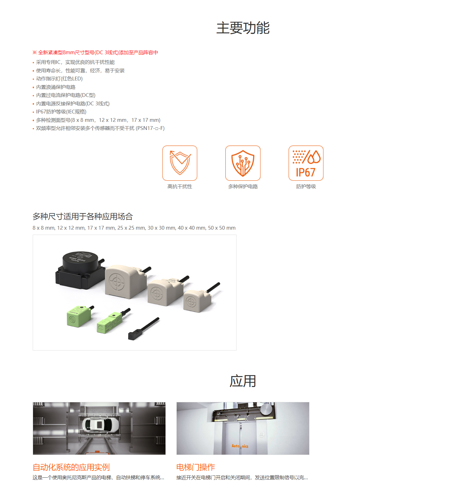 PS系列方形电感式接近开关具有出色的抗干扰性和保护电路。各种尺寸和检测面型号适用于不同的环境场合。