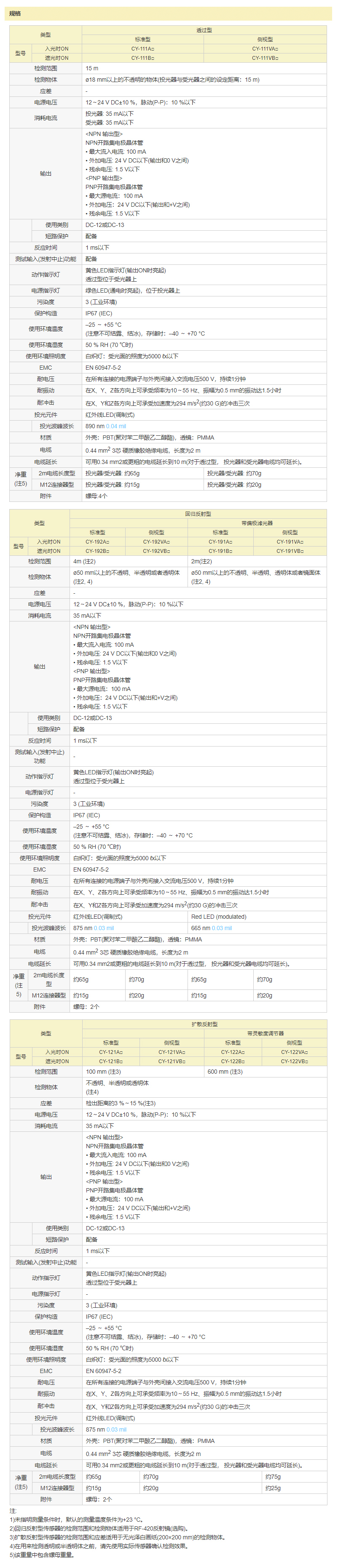 松下 圆柱形光电传感器 CY-100