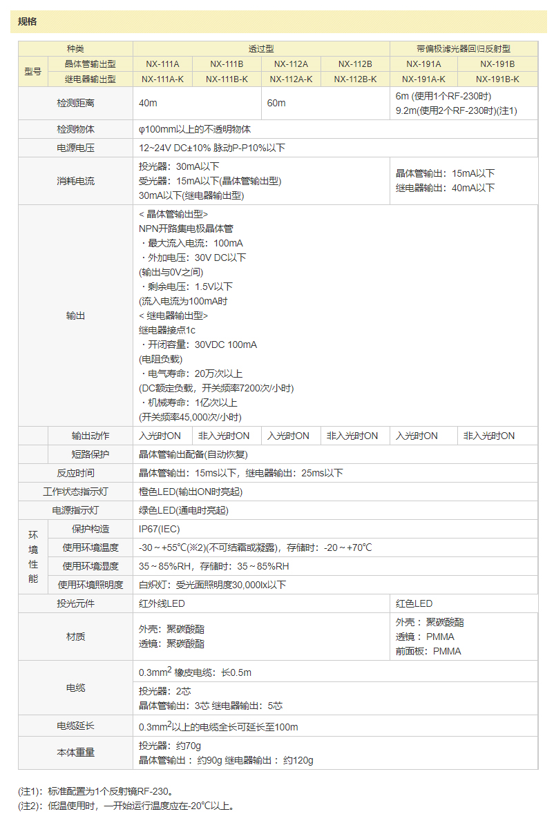 2.装备偏极滤光器,可对应强反射环境(仅限NX-191□产品)