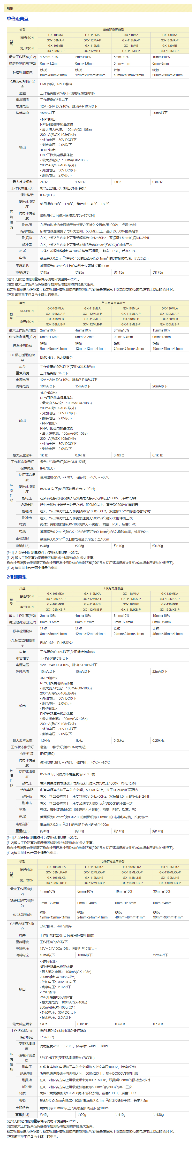 类型:单倍距离型、2倍距离型、屏蔽型、非屏蔽型